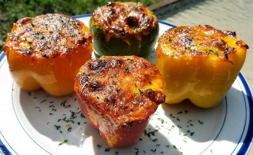 Chili Stuffed Peppers are a simple and healthy weeknight meal. Bell peppers are stuffed with our homemade rich and flavorful chili then baked until soft and delicious.