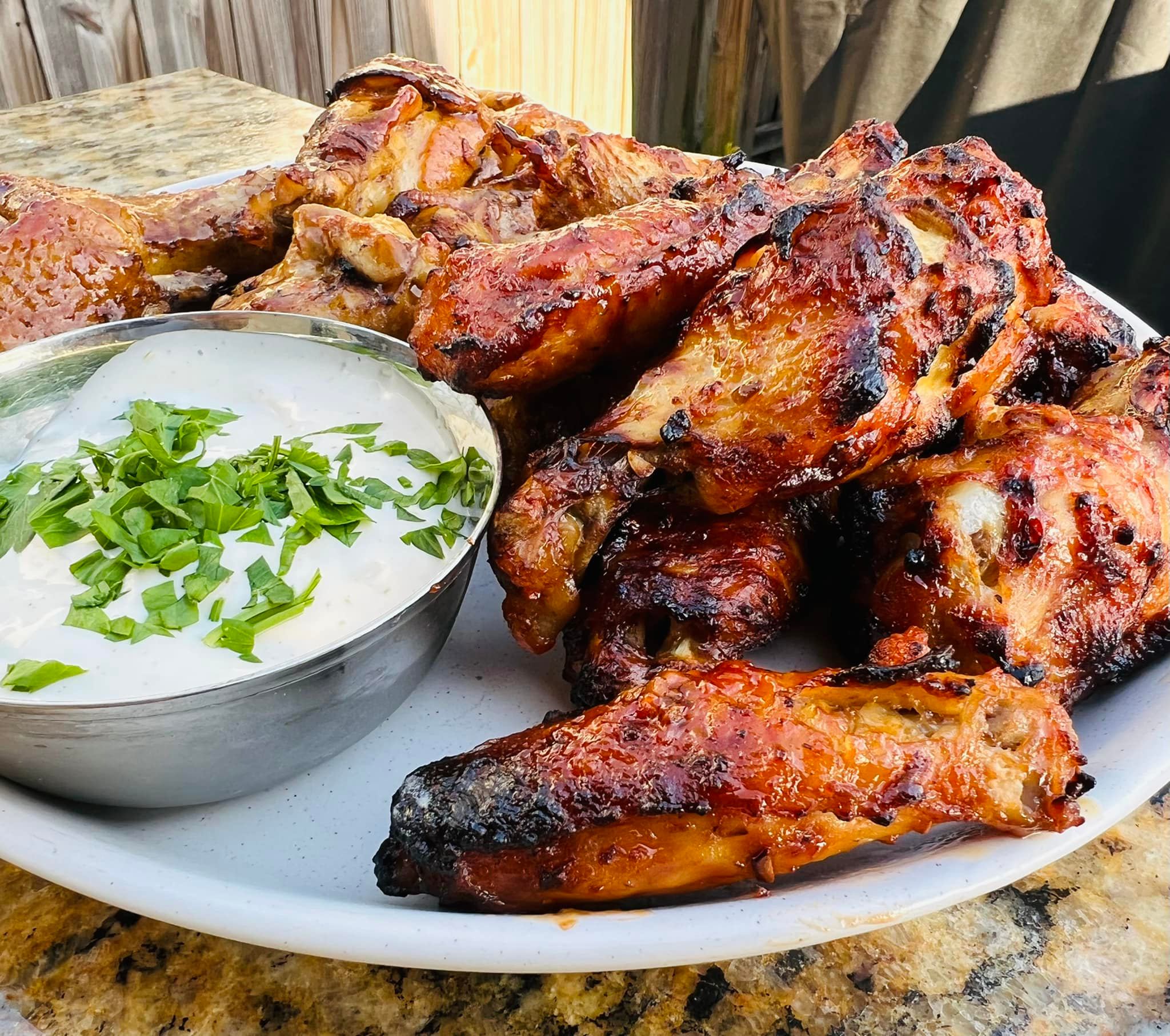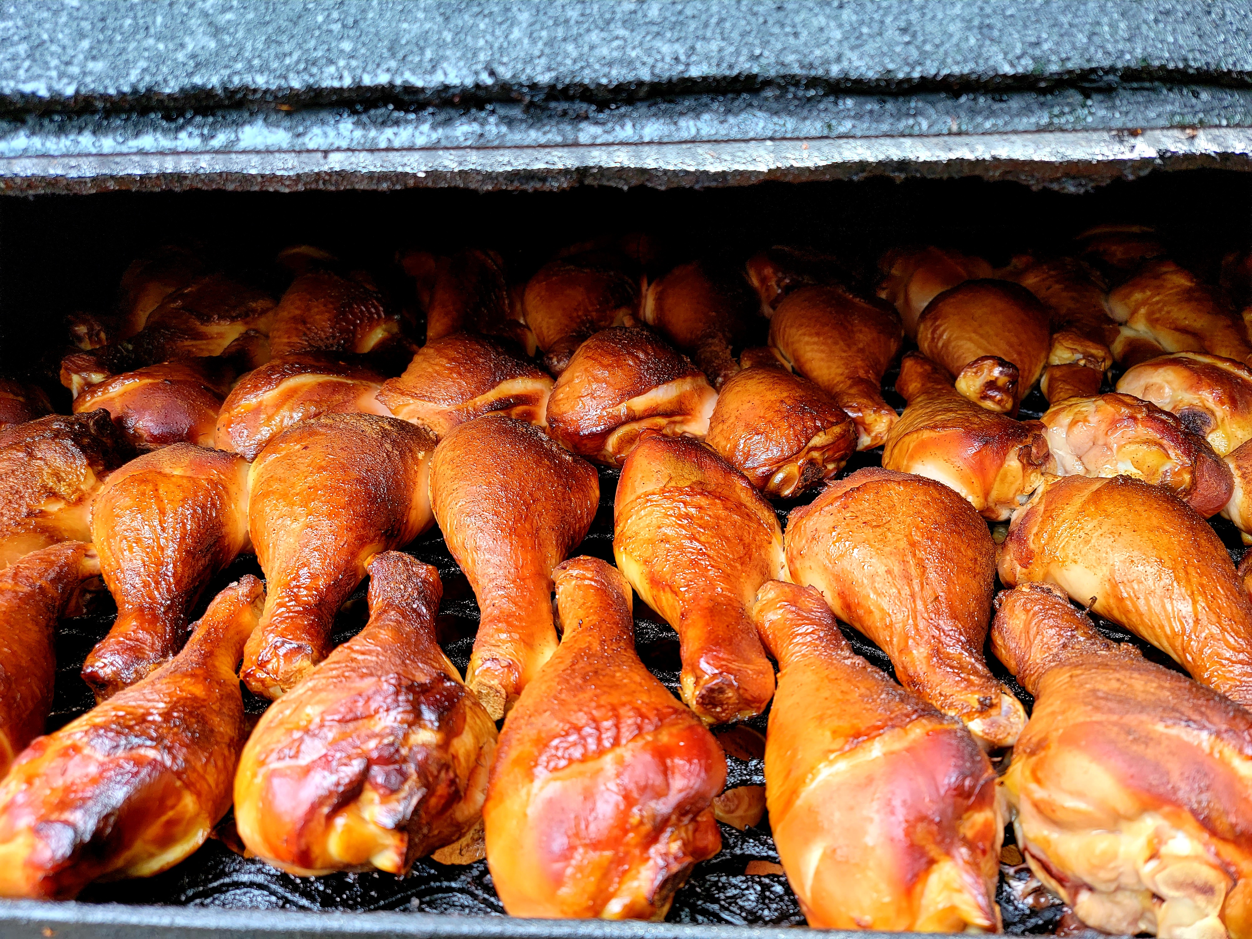 post oak smoked chicken drumsticks rubbed with our signature Urban Bourbon rub, a favorite for tailgate parties