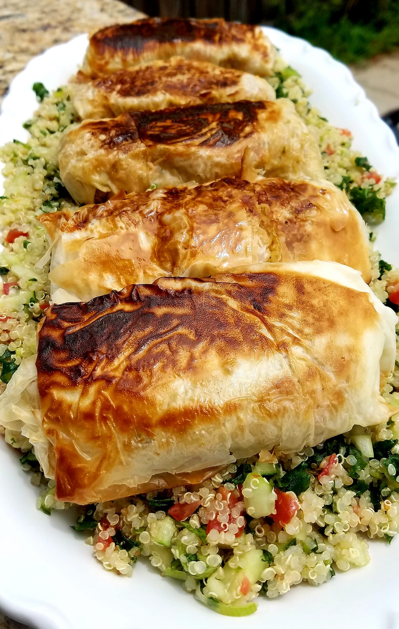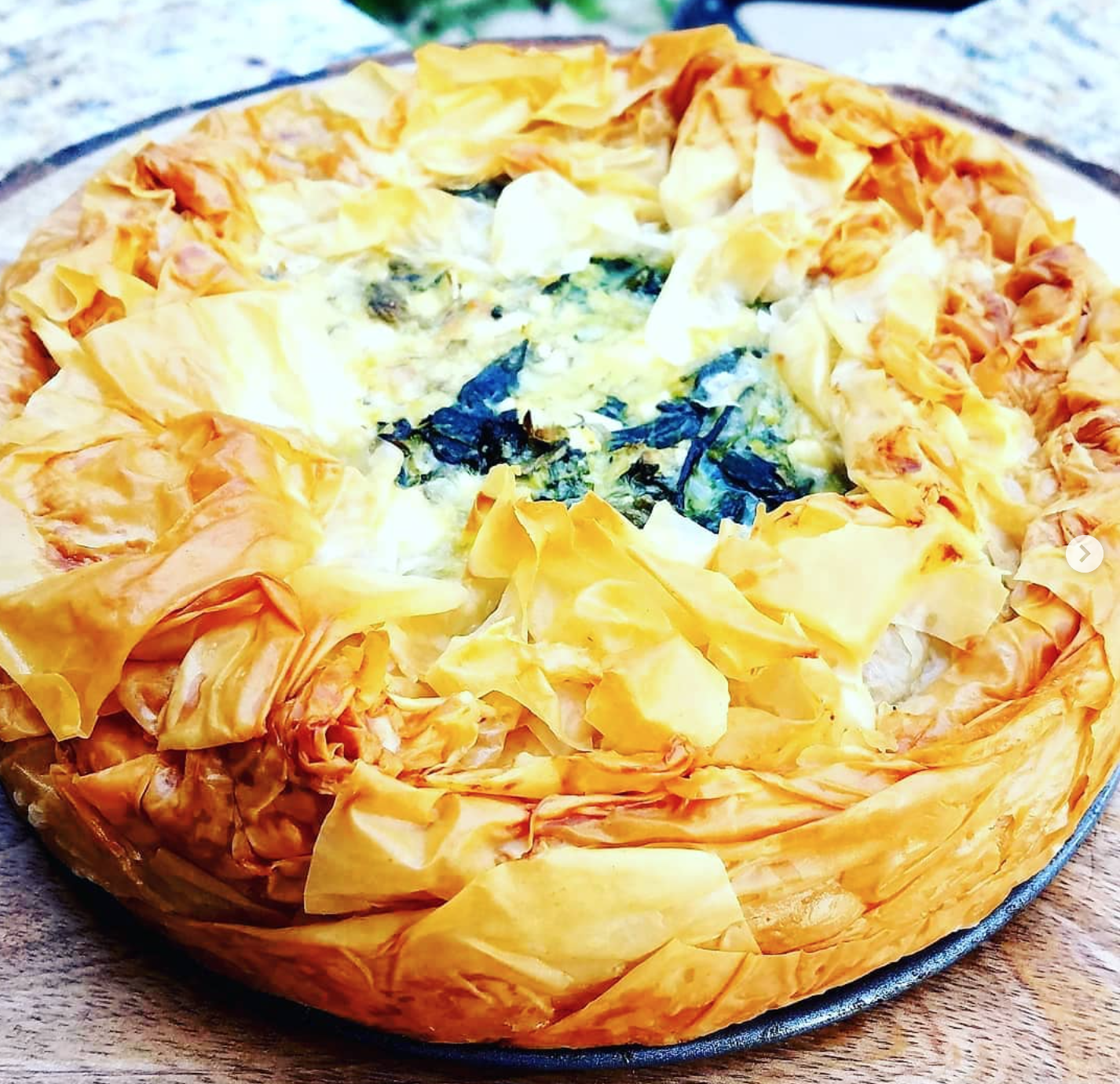Spanakopita is a delicious savory Greek pie made of perfectly crispy layers of phyllo dough and a comforting filling of spinach and feta cheese.