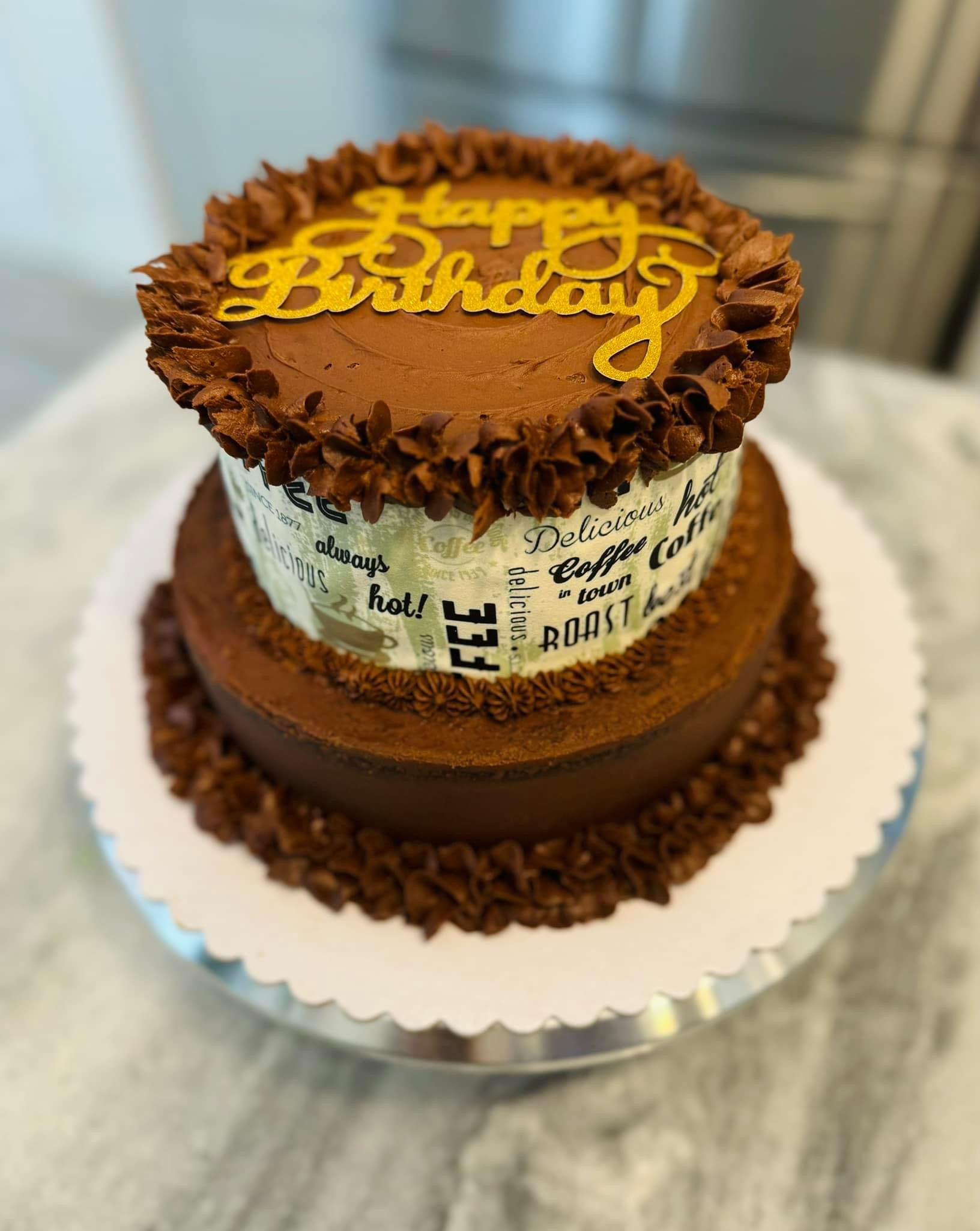 Made with freshly brewed espresso in the cake layers as well as in the dark chocolate buttercream