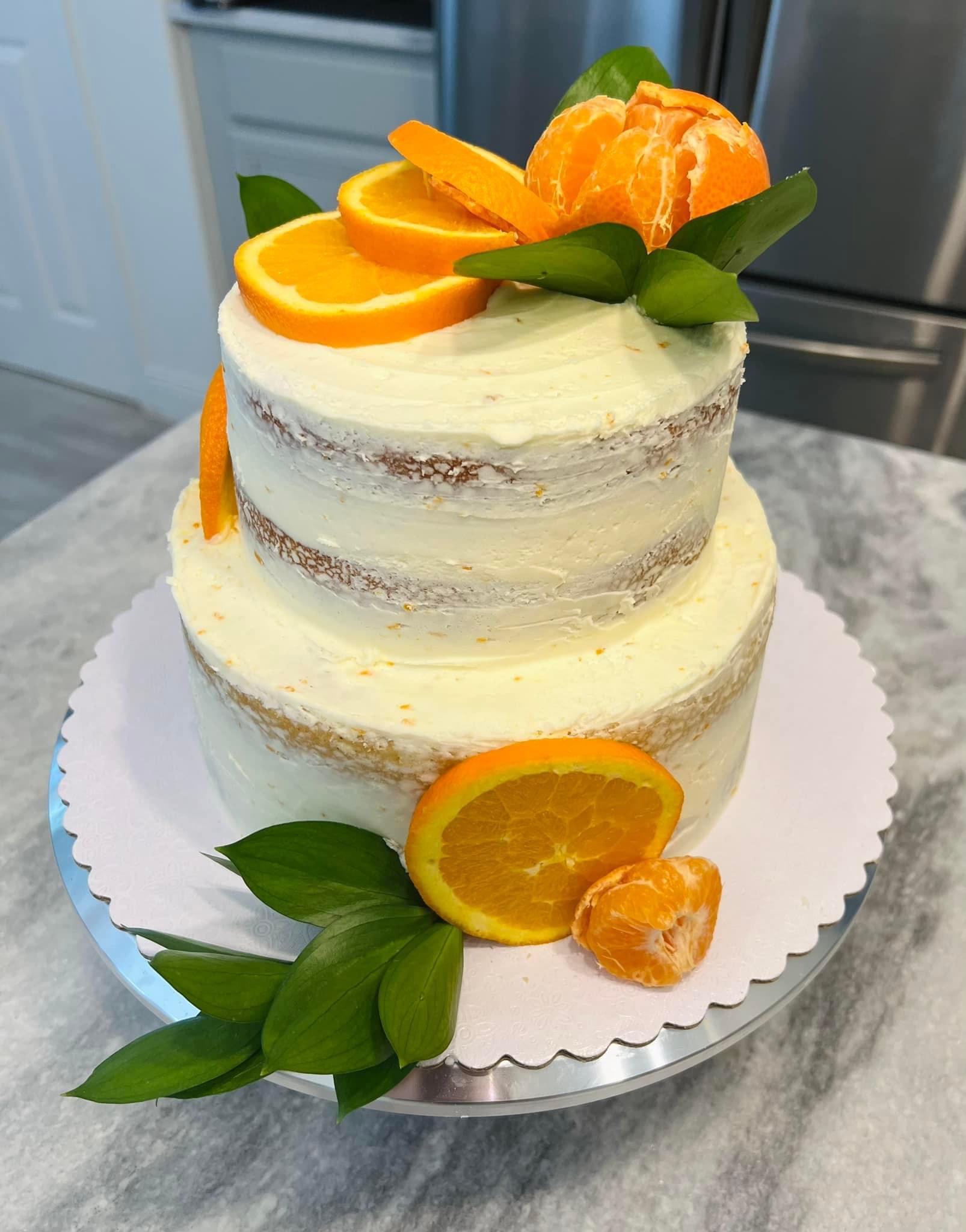 Vanilla Bean Cake with orange buttercream icing