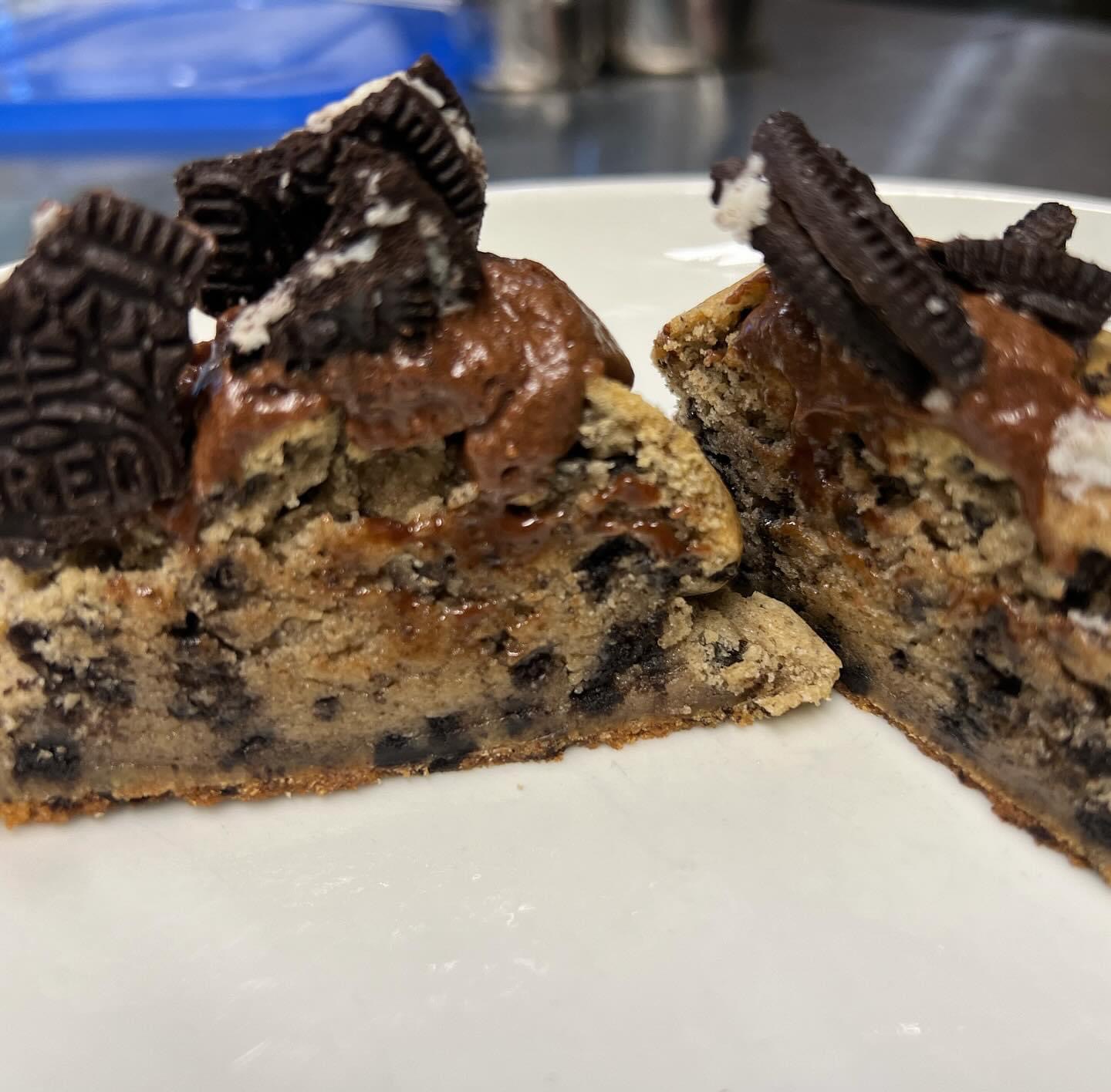 Oreo stuffed cookies topped with chocolate icing and crushed Oreo cookies
